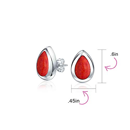 Gli orecchini a forma di goccia di lacrima hanno un set intarsiato rosso arancio Le borchie coralline sono 14 mm con pali in argento sterling e sono perfette per l'abbigliamento da giorno causale dell'ufficio