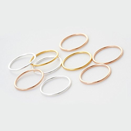 Midi ring semplice, in stile fede nuziale, comodo, in argento Sterling, misura sottile da 2 mm e oro rosa-argento incamiciato, 7, colore: Red, cod. JR30381RG07