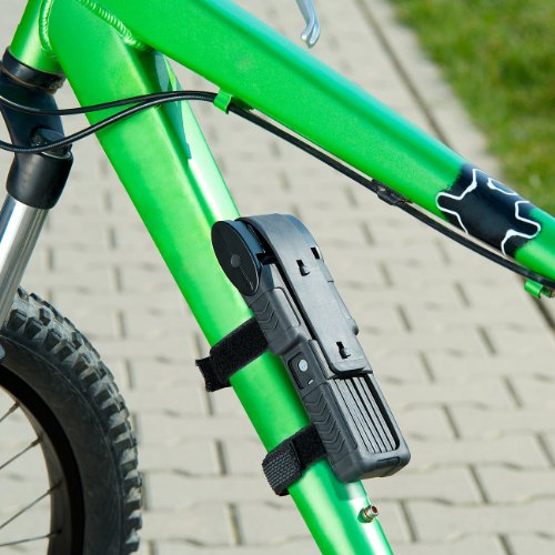 Lucchetto per bicicletta (lucchetto pieghevole) in acciaio • Cinghie in velcro della borsa: regolabile per diametri telaio fino a circa 5 cm