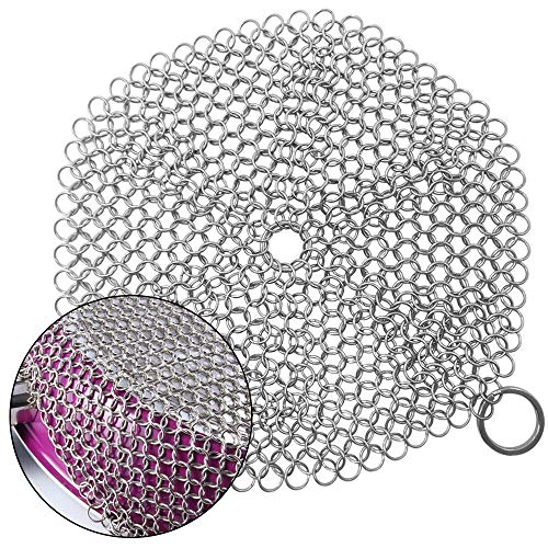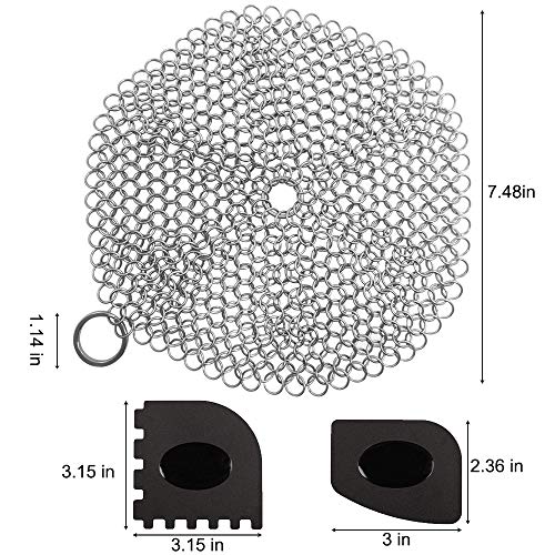 Qualità premium: questo detergente per padelle in ghisa è realizzato in acciaio inox 304 di qualità da ristorante. Ogni anello resistente è costituito da una struttura ad incastro con bordi lisci. Può pulire facilmente le macchie più ostinate e non c'è bisogno di preoccuparsi di arrugginirsi.