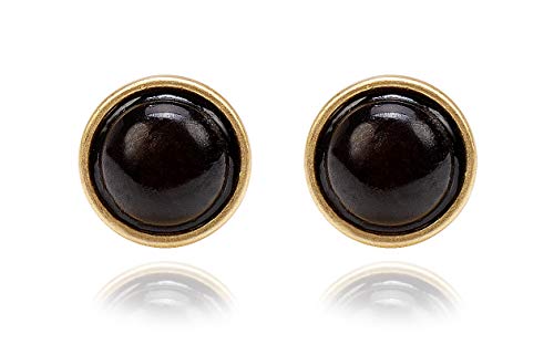 Ottone placcato oro di alta qualità, con bordi rifiniti e finitura opaca lucida. Acquamarina semicircolare blu. Privo di sostanze nocive e nichel.