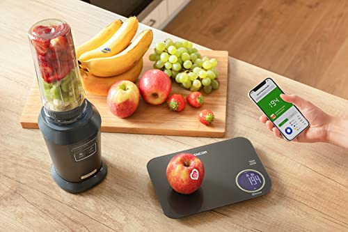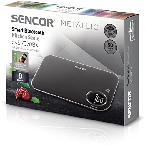 Sencor bilancia cucina digitale SKS707, bilancia da cucina elettronica pesa alimenti bluetooth smart, vetro temperato, bilancia di precisione display LCD(Nero)