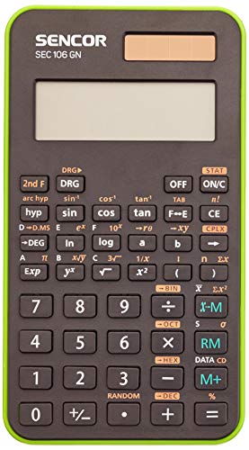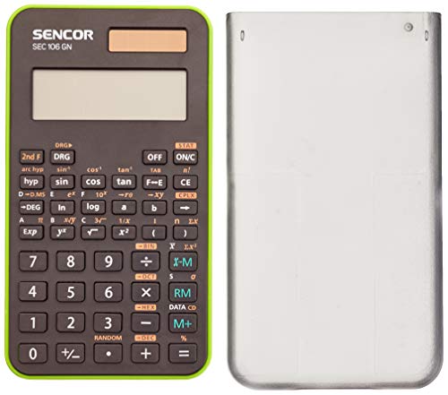 Sencor SEC 106 GN - Calcolatrice scolastica, 56 funzioni scientifiche, display LCD a 10 cifre, funzioni trigonometriche e iperboliche