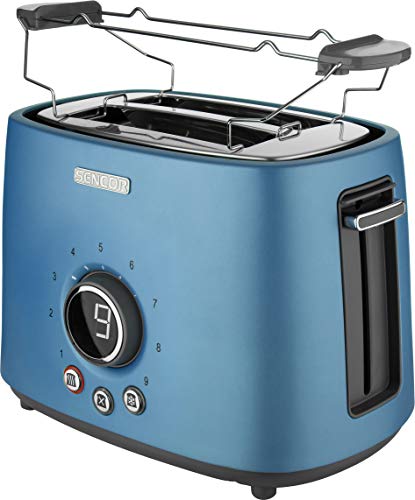 Sencor tostapane STS 6052 - Tostapane 2 fette con 9 livelli di tostatura, espulsione automatica, cassetto raccogli briciole, funzione scongelamento, scaldabrioche, tostiera elettrica (Blue)