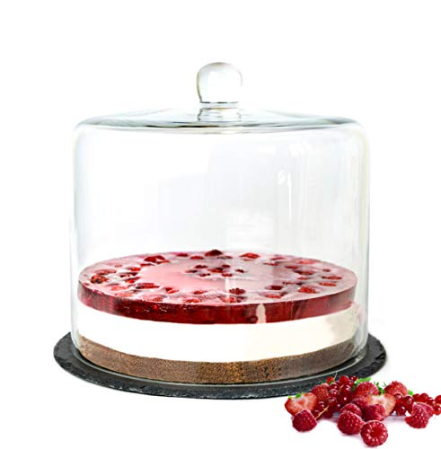 Sendez Campana in vetro su piastra in ardesia, 28 x 25 cm, per torte, per formaggio