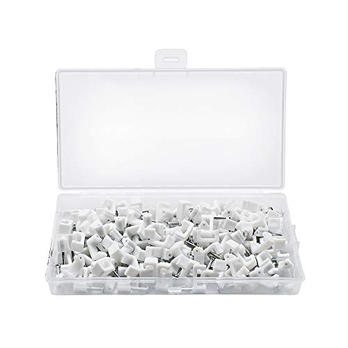 SENDILI 150 Pezzi Fermacavo Piatto con Chiodo - Clip per Fissaggio Cavi Fermacavi da Muro Supporto per Gestione dei Cavi Elettrici, 10MM / 150 Pezzi