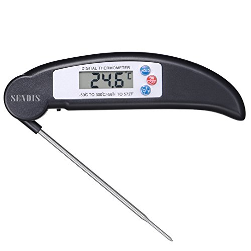 SENDIS Termometro Digitale da Cucina con Sonda Piegabile Schermo LCD Lettura Istantanea Digitale per Barbecue/Carne - Nero