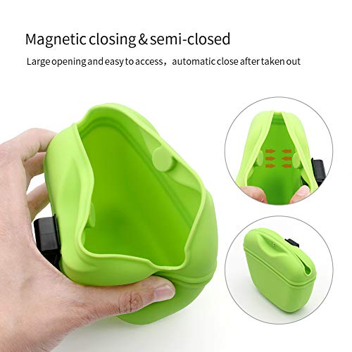 SENDR.KR Sacchetto per cani in silicone per addestramento del cane, borsa per cibo per cani, borsa per cibo per cani, borsa portatile con chiusura magnetica e clip per la vita, set da 2 (verde rosa)