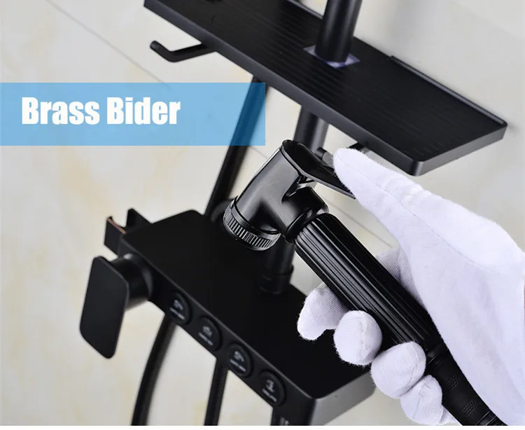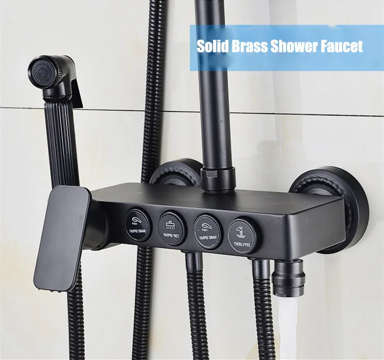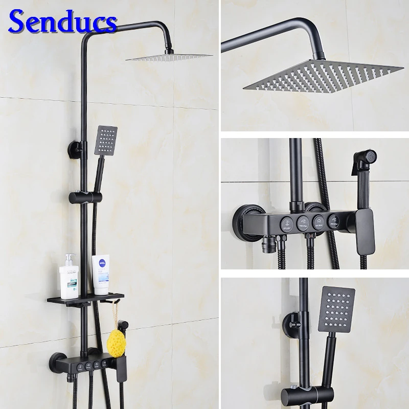 Senducs Bronze Black Shower Set Fashion Four Button Black Bathroom Shower System Stainless Steel Top Shower Faucet