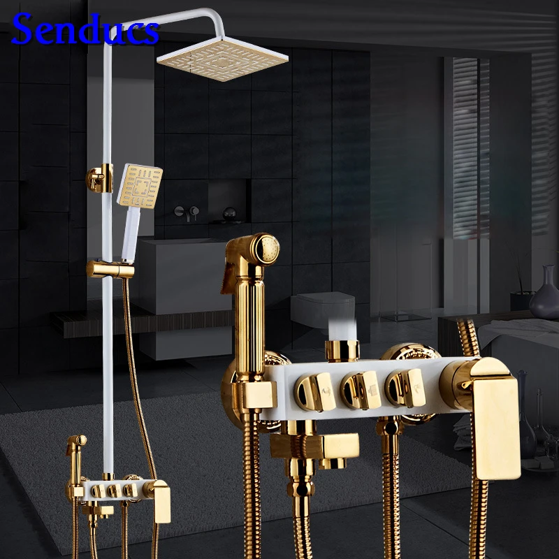 Senducs White Gold Shower Set with High Quality Brass Bathroom Shower System of Brass Bath Bidet for Hot Sale Shower Set