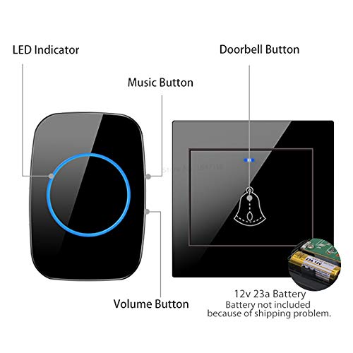 400 m di portata senza fili, portata di funzionamento a lunga distanza fino a 400 m, segnale wireless forte e stabile assicura che si può sentire chiaramente il suono del campanello anche quando si è in più stanze o su un altro pavimento