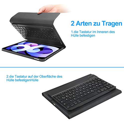 SENGBIRCH Custodia per Tastiera Bluetooth (Tastiera Illuminata Layout Tedesco) Compatibile con iPad Air 4 / iPad Pro 11 1 e 2 Generazione (iPad Air 4, Colore Nero.)