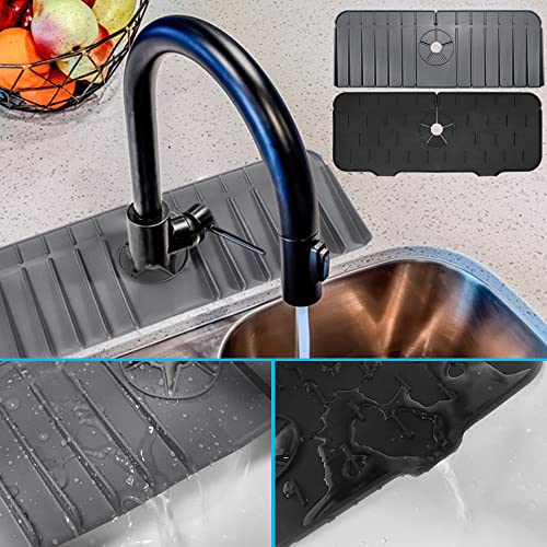 SENHAI Paraspruzzi per lavello, 2 tappetini in silicone per lavello, rubinetto da cucina e bagno, per asciugare controsoffitti per proteggere utensili da cucina e accessori