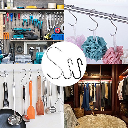 Materiale: questi ganci a forma di S sono realizzati in acciaio metallico di alta qualità, abbastanza forte e sicuro (lucidatura liscia e senza estremità appuntite), non c'è bisogno di preoccuparsi di ferire la mano.