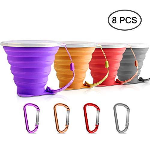 SENHAI 4 pezzi pieghevole tazza da viaggio con un coperchio, portatile in silicone multifunzione retrattile per escursioni campeggio picnic con 4 moschettoni - 4 colori
