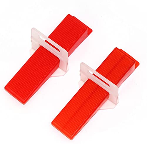 Senhilleu Sistema di livellamento delle piastrelle per piastrelle (200 Pezzi Rosso Cunei)