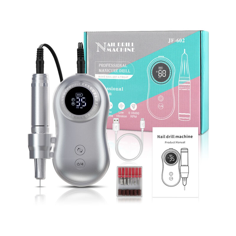 SENIGNOL 35000RPM trapano per unghie Display LCD portatile ricaricabile per strumenti per Pedicure Manicure attrezzatura professionale per unghie Descrizione del prodotto:【Professionale Multifunzionale】Progettato con 6 tipi di punte metalliche e 6 bande abrasive, adatto a tutti i tipi di punte con gambo da 3/32 ". Trapano elettrico per unghie fantastico per lucidare le unghie, limare la forma di varie unghie e levigare calli o pelle temprata sulle mani e sui piedi. Perfetto per macinare, tagliare, intagliare, limare, lucidare e rimuovere le unghie in polvere per immersione in gel acrilico.【Ampio Display LCD e manopolaL'affissione a cristalli liquidi per trapano per unghie mostra la velocità, la direzione di rotazione e la potenza residua. Con una grande capacità della batteria (2600mA), completamente caricata per circa 2 ore, il filer per unghie elettrico funziona fino a 10 ore. Il trapano elettrico per unghie può caricare il telefono per evitare il disagio dello spegnimento del