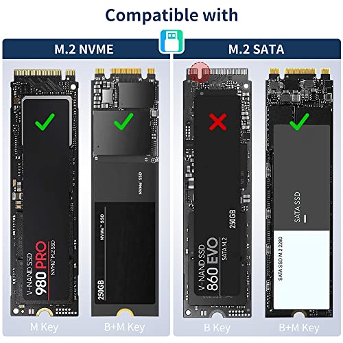 SENKUTA Alloggiamento SSD M.2 NVME con USB 3.2 Gen 2 (10 Gbps), Alloggiamento in Alluminio per M.2 NVMe/SATA SSD (2230, 2242, 2260, 2280) di M-Key o M+B Key
