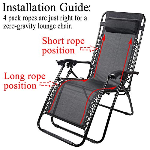 La confezione include: due diverse lunghezze delle corde, 2 corde lunghe (2,4 m) per il poggiapiedi e 2 corte (1,5 m) per lo schienale della sedia reclinabile, è possibile cambiare facilmente qualsiasi parte della sedia.