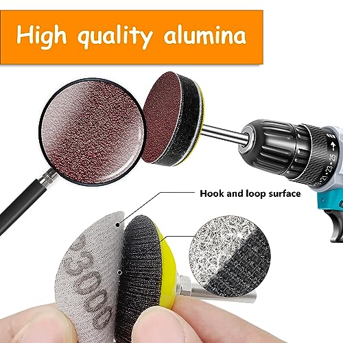 Set completo: include un gambo rotondo da 1/4 di pollice (6,35 mm). Un tampone di lucidatura di alta qualità da 50 mm e 2 pollici, set di 170 (carta con grana 60-7000).