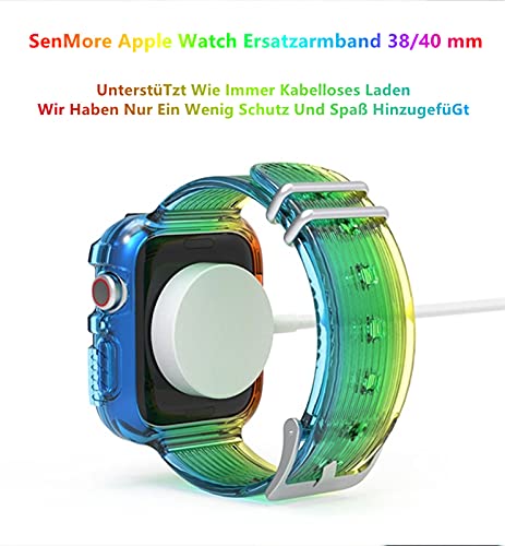 SENMORE Cinturino Compatibile con Apple Watch SE, Apple Watch Serie 6/5/4/3/2/1 38mm/40mm Cinturini di Ricambio, Trasparente TPU Cinturino PER iWatch Uomo e Donna, Arcobaleno