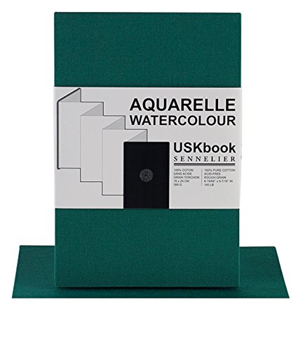 Sennelier USKbook - Quaderno con copertina rigida per acquerello, in lino, grana grezza, 300 g/m², 16 x 24 cm, colore: Verde