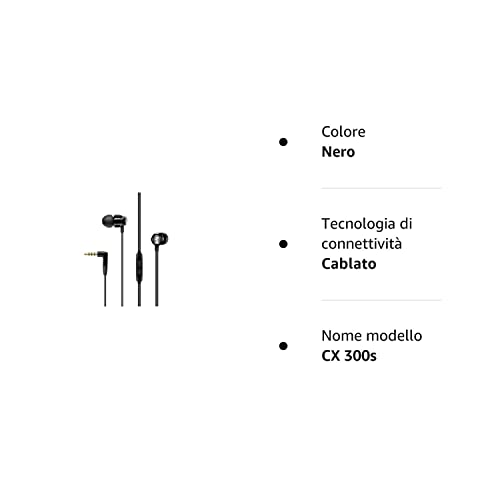 Sennheiser CX 300s Microcuffia Microfonica Tipo Ear Canal con Comandi Remoti Universali, Nero