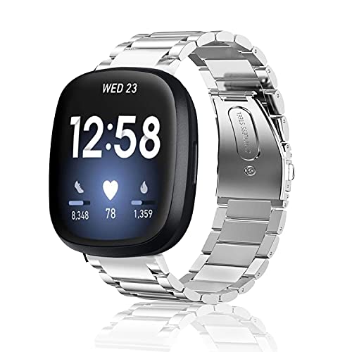 SeNool Cinturino Compatibile con Fitbit Versa 3 / Sense Cinturini in Acciaio inox con Doppia Fibbia Pieghevole per Fitbit Sense/Versa 3 (Argento)