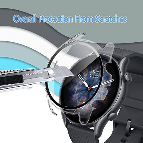 SeNool Custodia Compatibile con Amazfit GTR 3/3 Pro, PC Cover Rigida con Vetro Temperato Protezione di Schermo, [Durezza 9H] Case Compatibile con Amazfit GTR 3/3 Pro - Trasparente