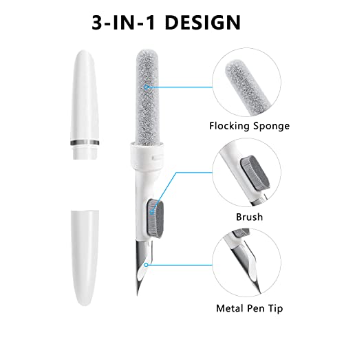 [Kit di Pulizia per Auricolari Bluetooth 3 in 1] Design nascosto a doppia testa per soddisfare una grande varietà di esigenze di pulizia. Penna di Pulizia Multifunzione è composta da 3 parti, la punta, la spazzola in microfibra e la spazzola in spugna. Aiutano a pulire aree difficili da raggiungere o altri angoli. Nessun danno ai componenti e ai fori degli auricolari, puoi usarlo con fiducia. Non utilizzare mai liquidi per pulire gli auricolari.