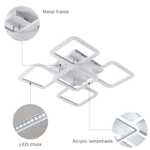 SENQIU Plafoniera LED Soffitto Moderna, Lampada da Soffitto Quadrata 70W, Lampadario LED Soffitto Bianca per Soggiorno, Camera da Letto, Ufficio, 6500K Luce Bianca Fredda