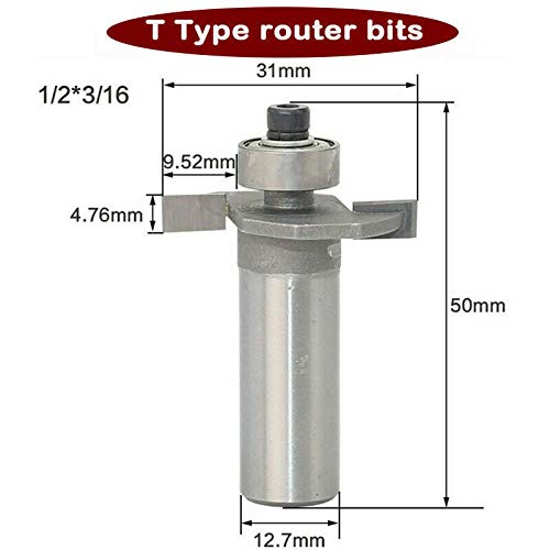 SENRISE Punta per fresa con cuscinetti in carburo, punta per fresa a T con gambo da 1/4" per legno, MDF, truciolato, compensato, dimensioni 1/2 x 3/16