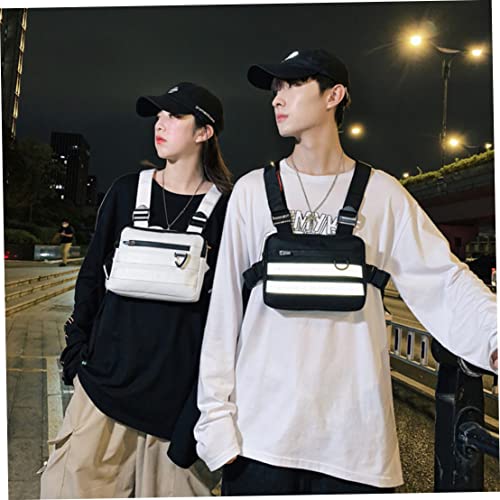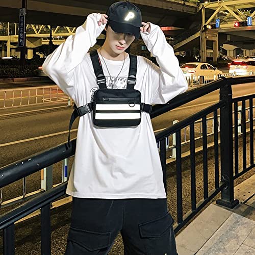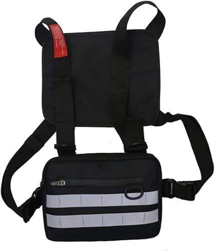 SENRN Chest Rig Bag Multifunctional Waist Front Bag Vest Waist Bag Shoulder Bag for Hiking Running Camping Black Reflective