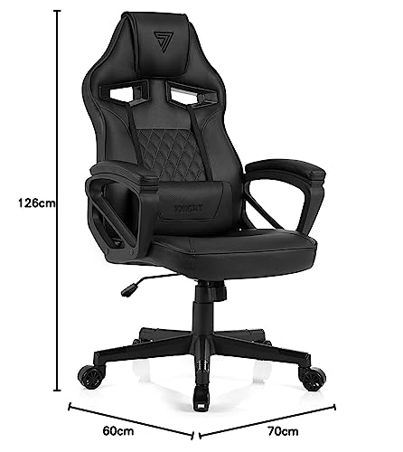 SENSE7 Poltrona da gioco Knight, ergonomico con cuscini lombari regolabili, sedia da gioco con oscillazione, braccioli imbottiti, sedia da ufficio in similpelle fino a 120 kg, sedia PC nera