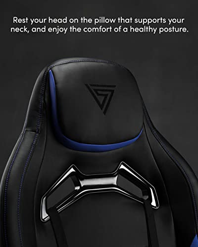 SENSE7 Poltrona da gioco Vanguard, ergonomico con cuscini lombari regolabili, inclinazione regolabile, sedia da gioco con oscillazione, sedia da ufficio in similpelle 150kg, sedia PC nera-blu