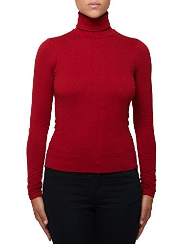 SENSI' Dolcevita Donna Manica Lunga Lana Senza Cuciture Seamless - Made in Italy (38-42, rossof)
