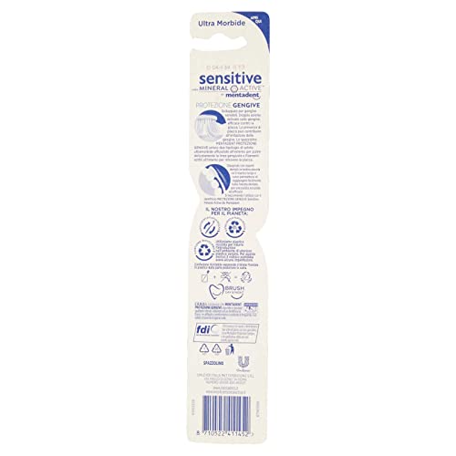 6x Sensitive Mineral Active Mentadent Spazzolino Protezione Gengive con Setole Ultra Morbide per Gengive Delicate - 6 Spazzolini