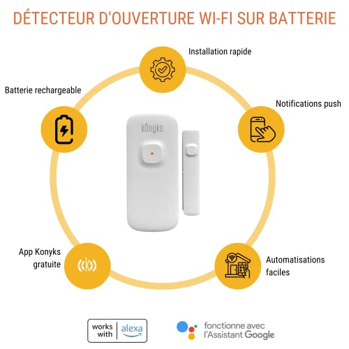 Senso Charge 2 Rilevatore di apertura Wi-FI Konyks Senso Charge - Batteria al litio, autonomia 1 anno, Notifiche smartphone, automazioni facili, compatibile Alexa & Google Home