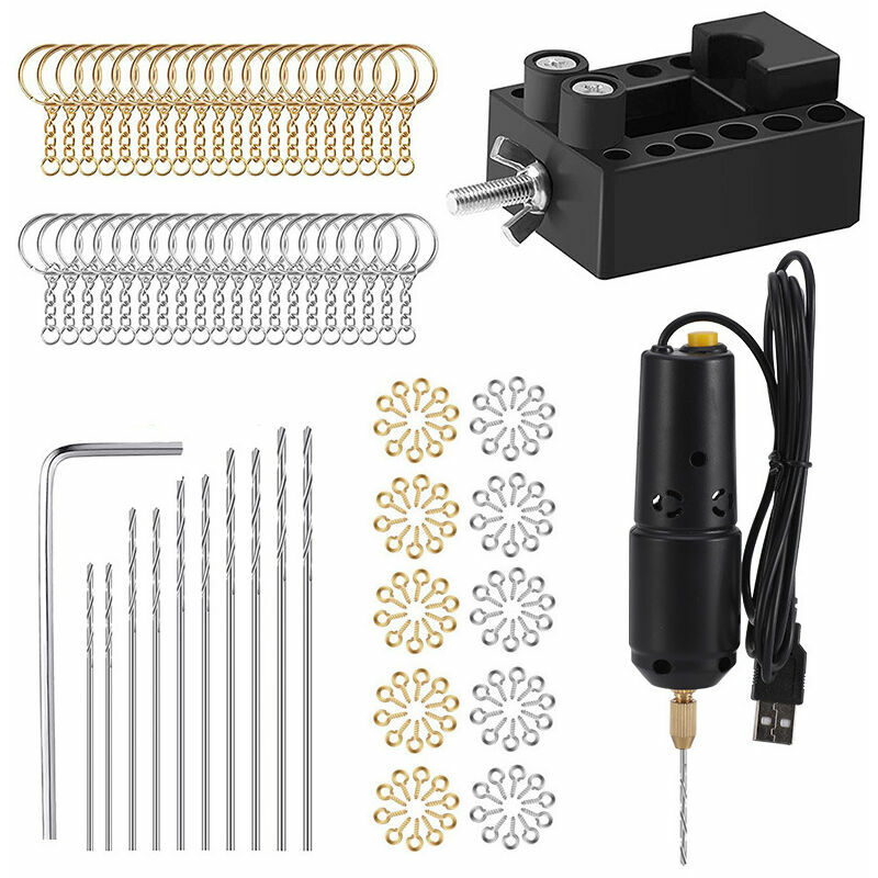 Nome: trapano elettrico USB nero 5V360 Interfaccia: USB Intervallo di serraggio: dimensioni ridotte 0,5-1,2 mm Tipo di alimentazione: alimentazione CA Angolo del trapano elettrico: diritto Tipo di motore: motore a spazzole Il pacchetto include: Trapano elettrico + chiave inglese + 10 punte da trapano (confezione da 0,8-1,2 mm) + 50 chiodi in corno d'oro e d'argento ciascuno + 20 portachiavi d'oro e d'argento + morsetto piccolo
