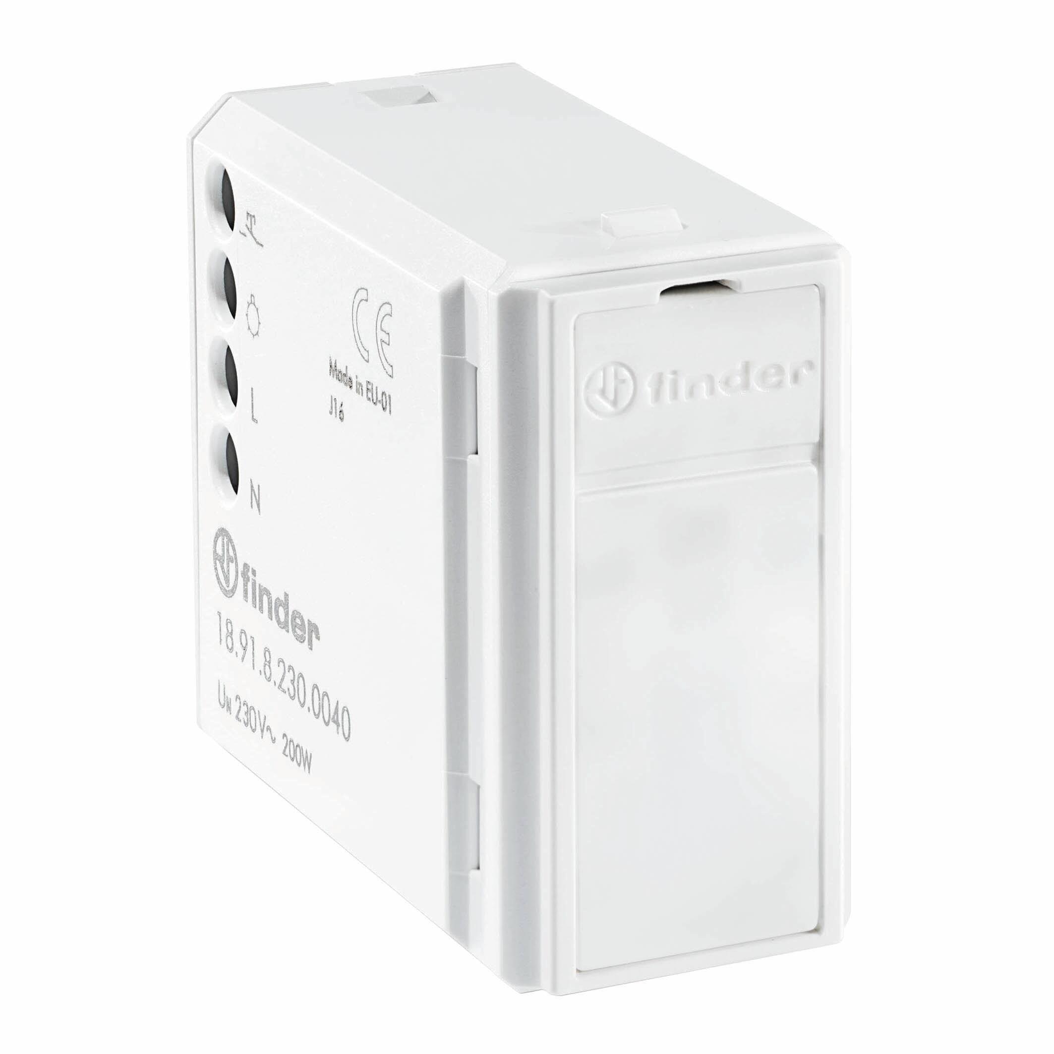 1 modulo, bianco, compatibile con serie Bticino, Gewiss, Vimar, Simon Urmet. Pulsante esterno per forzare lo stato di uscita. Adattatori per le serie civili di alta rotazione inclusi nella confezione.. Design moderno. Adattatori per i principali sistemi civili compresi. Potenza minima = 3W - Potenza massima =200W. Adattatori per le serie civili di alta rotazione inclusi nella confezione. 1 uscita (TRIAC) con commutazione "zero crossing"