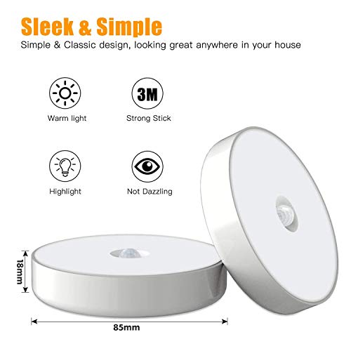 Luce a LED Con Sensore Di Movimento, PTN luce Notturna a LED Ricaricabile Con Cavo USB, Con Cuscinetti Adesivi 3M e Magnete Per Scale, Soggiorno, Bagno, Corridoio (Warm 2PCS)