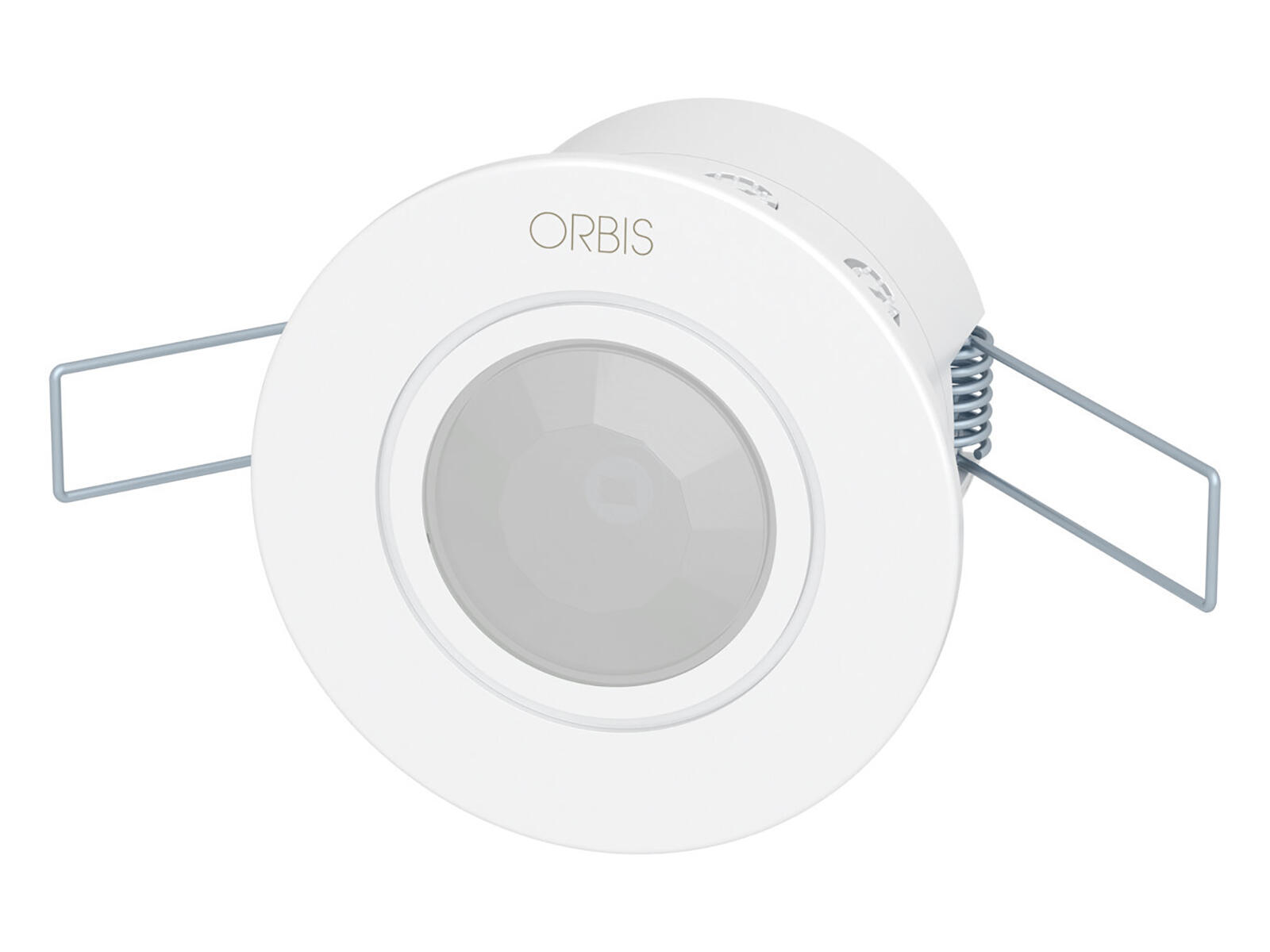 Rivelatore di movimento da incasso per il comando ON/OFF automatico delle luci, angolo / diametro di rilevamento 360° / 7 m a 2,5 m di altezza, uscita 1 relé, regolazioni del tempo di ritardo allo spegnimento e della soglia luminosità di intervento, IP20