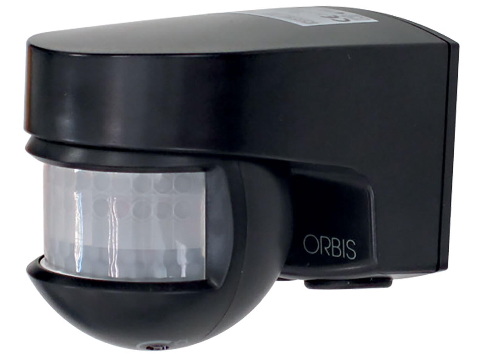 Rivelatore di movimento da parete per il comando ON/OFF automatico delle luci, angolo / raggio di rilevamento 200° / 12 m, uscita 1 relé, regolazioni tempo di ritardo allo spegnimento e soglia luminosità di intervento, colore nero, IP55