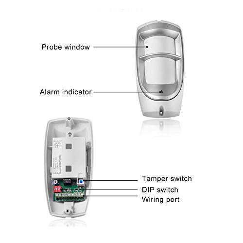 Sicurezza: l'angolo di rilevamento ampio 110 ° a infrarossi a doppio raggio e la distanza di rilevamento lunga 12 m/39,4 piedi sono più sicuri e più affidabili.Rivelatore a infrarossi passivi con modalità bus e modalità relè.Due sensori binari di rilevamento a infrarossi passivi ad alta precisione, chip digitale a intelligenza artificiale.