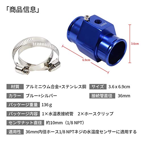 【Pacchetto】 Il Manometro del tubo del radiatore viene fornito con un adattatore per termometro dell'acqua in alluminio e due fascette stringitubo in acciaio inossidabile per la tua auto