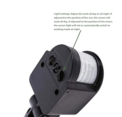 Impostazioni di luce: regola il lavoro tutto il giorno o tutta la notte, se regolato al livello del sole, il sensore funziona tutto il giorno, se regolato al livello lunare, la luce del sensore non entra automaticamente in modalità di lavoro di notte o automaticamente