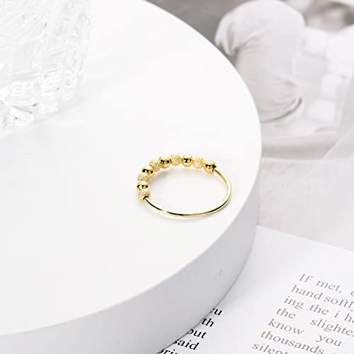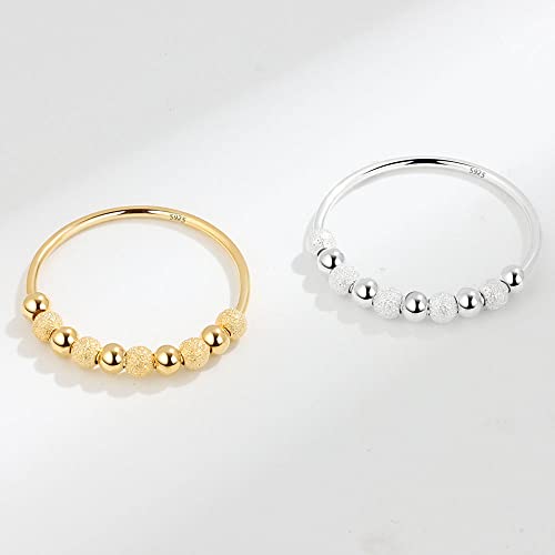Senteria Anelli di Ansia Agitato 925 Sterline d'Argento Anello di Perline Spinner Anti-Stress Ruota Anello Fidget Gratuito per Donna Ragazze