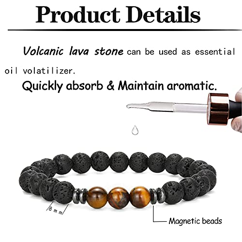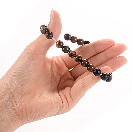 MATERIALI DI ALTA QUALITÀ - Scegli pietre naturali occhio di tigre e agata da 8 mm, seleziona con cura perline di alta qualità, elimina i prodotti difettosi, lucidati a mano, per garantire che ogni perlina sia rotonda e liscia, scegli fili elastici ad alta elasticità a doppio strato corde. Dimensioni da 7 pollici a 9 pollici, adatte per la maggior parte dei polsi da uomo, comode da indossare.