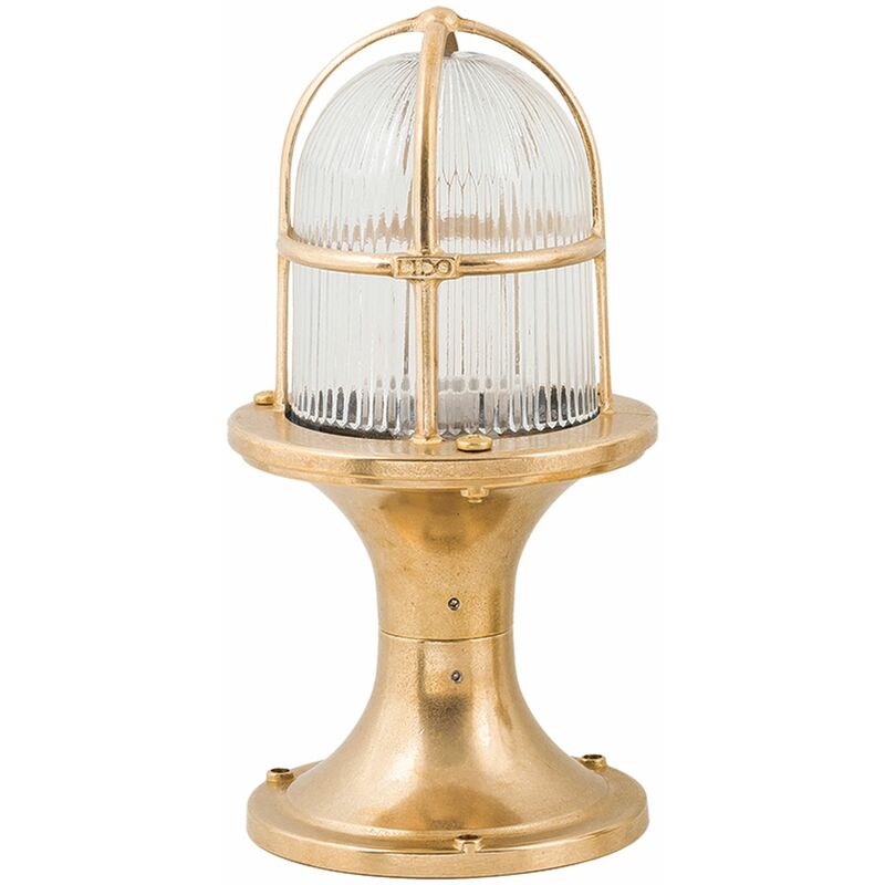 Dettagli del prodotto Materiale: Ottone, vetro Dimensioni: larghezza: 140 mm, altezza: 280 mm, lunghezza: 140 mm Attacco: 1x E27 fino a. 18W Classe di protezione dagli spruzzi: IP54 Colore: ottone, trasparente/trasparente Peso: 2250 grammo