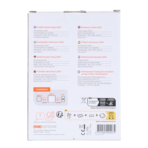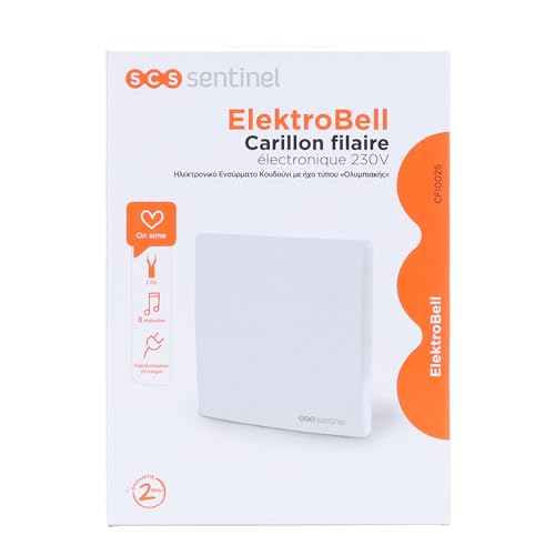 SCS Sentinel CFI0025 ElektroBell Wired Bell-Suoneria Elettronica a Filo da 230V con trasformatore Integrato da 5V-8 Melodie-Materiale ABS-Uso interno-CFI0025, Bianco